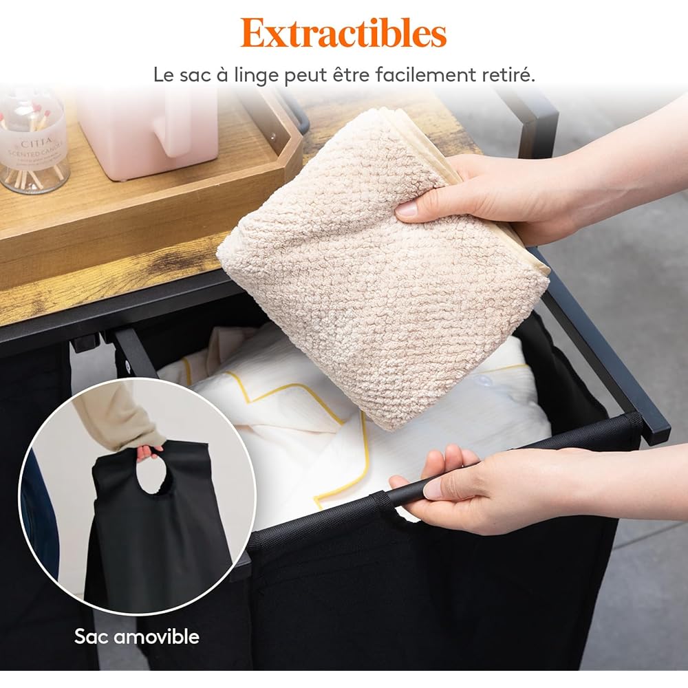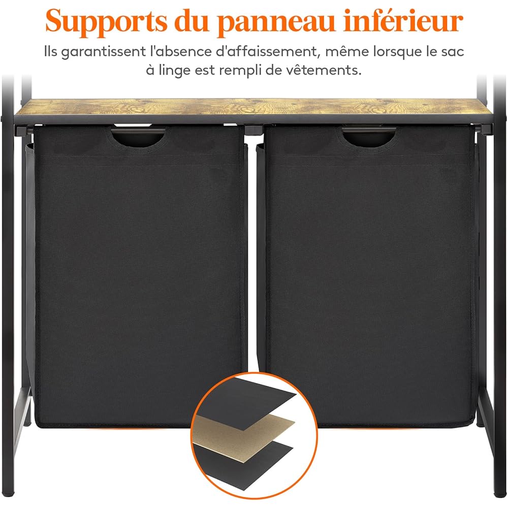Lifewit Panier a Linge 2 Compartiments 95L, Meuble Linge Sale avec 2 Sac à Linge Sale en Tissu Oxford et Étagère en Métal, Bac à Linge pour Buanderie, Chambres, Salles de Bains, Dortoirs, Noir : Cuisine et Maison