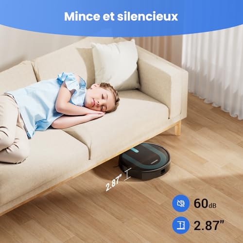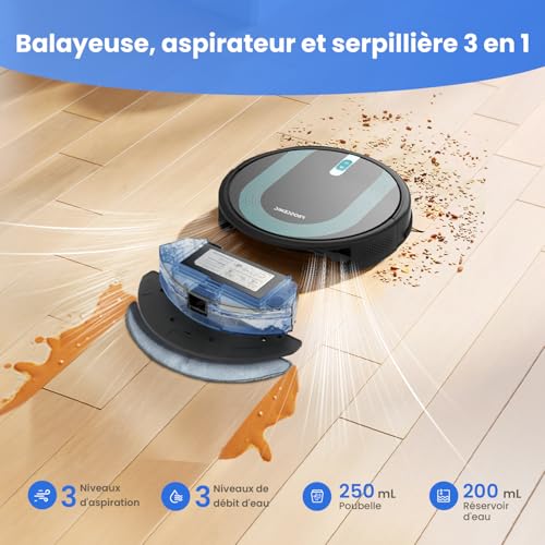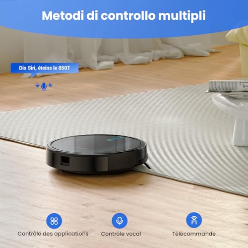 Proscenic 850T Robot Aspirateur Laveur 3000Pa, Aspirateur Robot Aspiration puissante 120min d'Autonomie, 7.3cm Ultra Mince Silencieux,Connecté par Alexa/APP/IFTTT, pour Poils Animaux Tapis Sols Durs : Cuisine et Maison