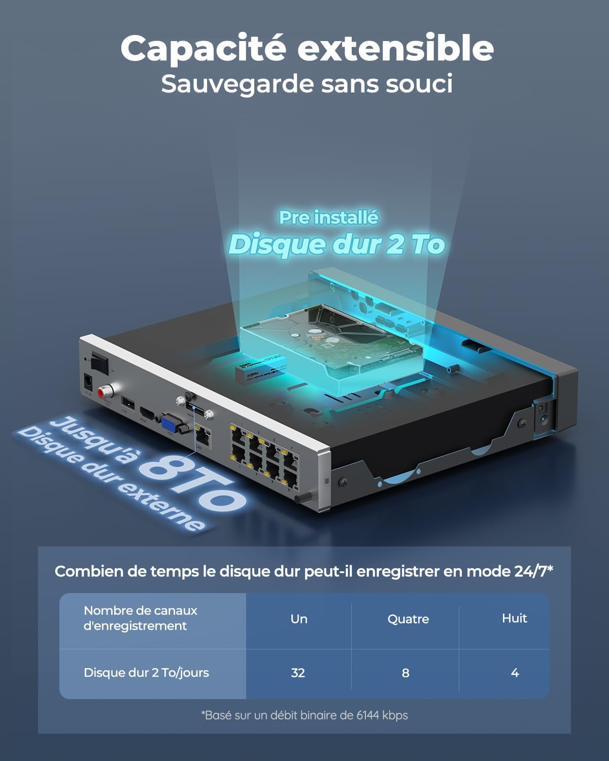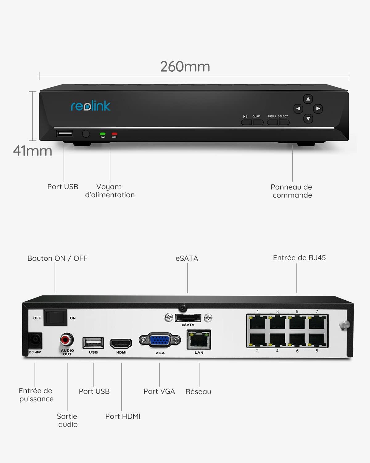 Reolink 4K PoE NVR 8 Canaux Caméra de Sécurité à Domicile