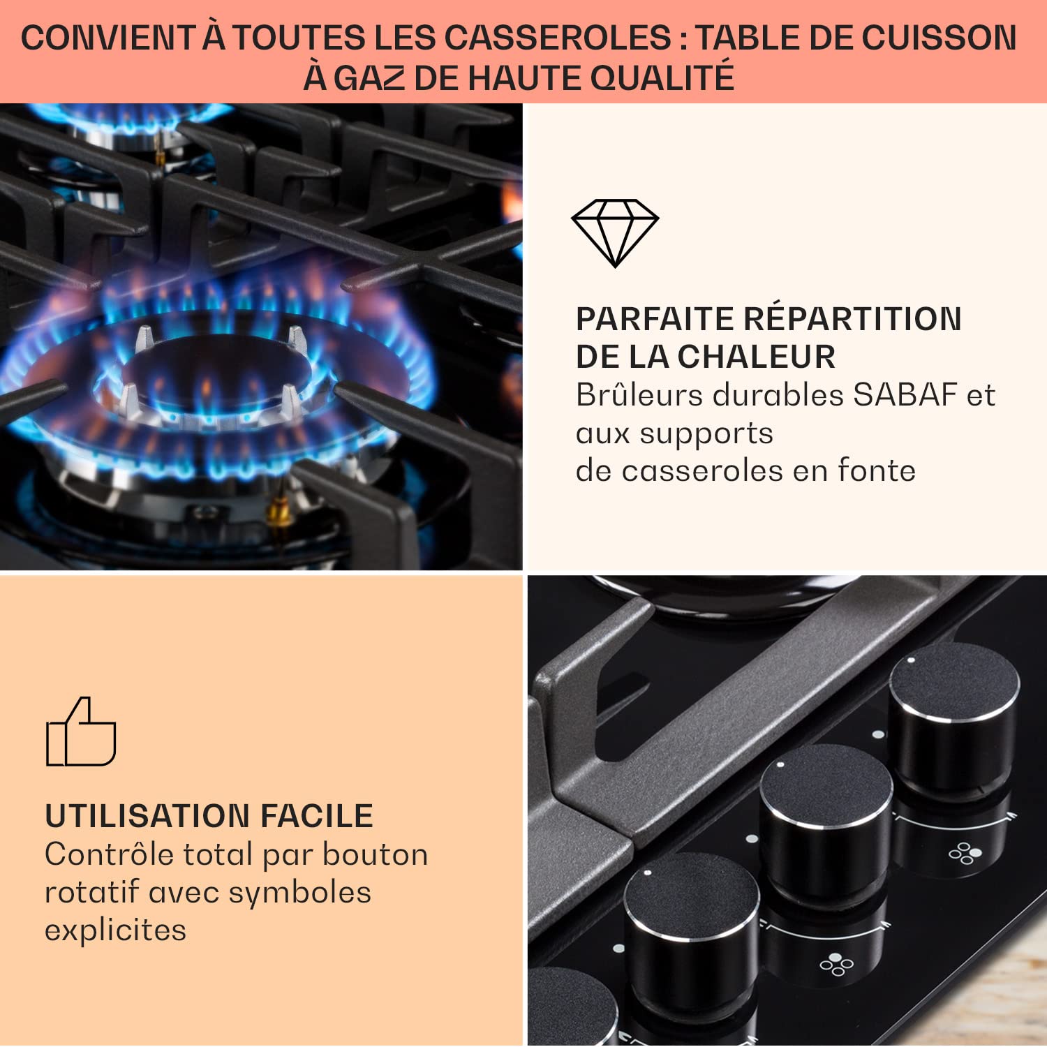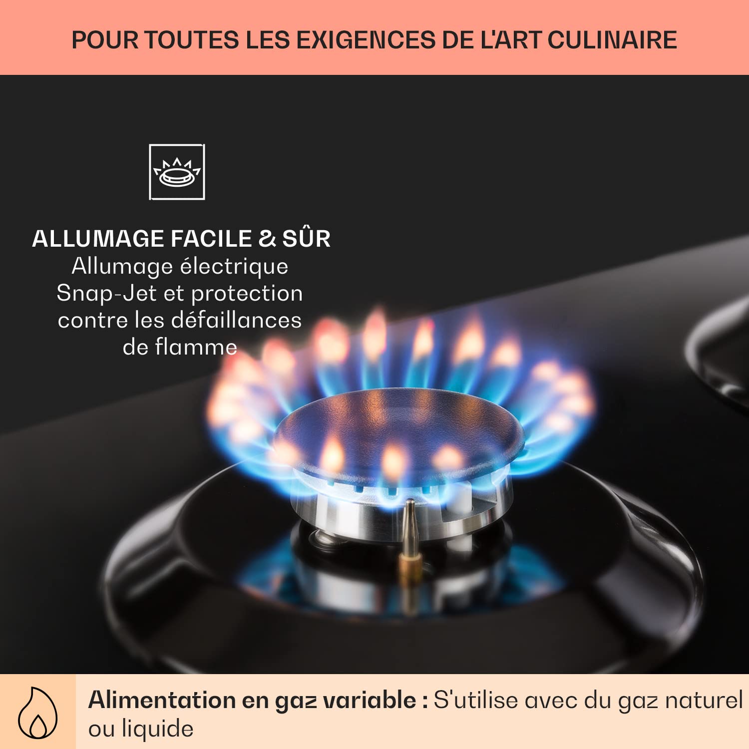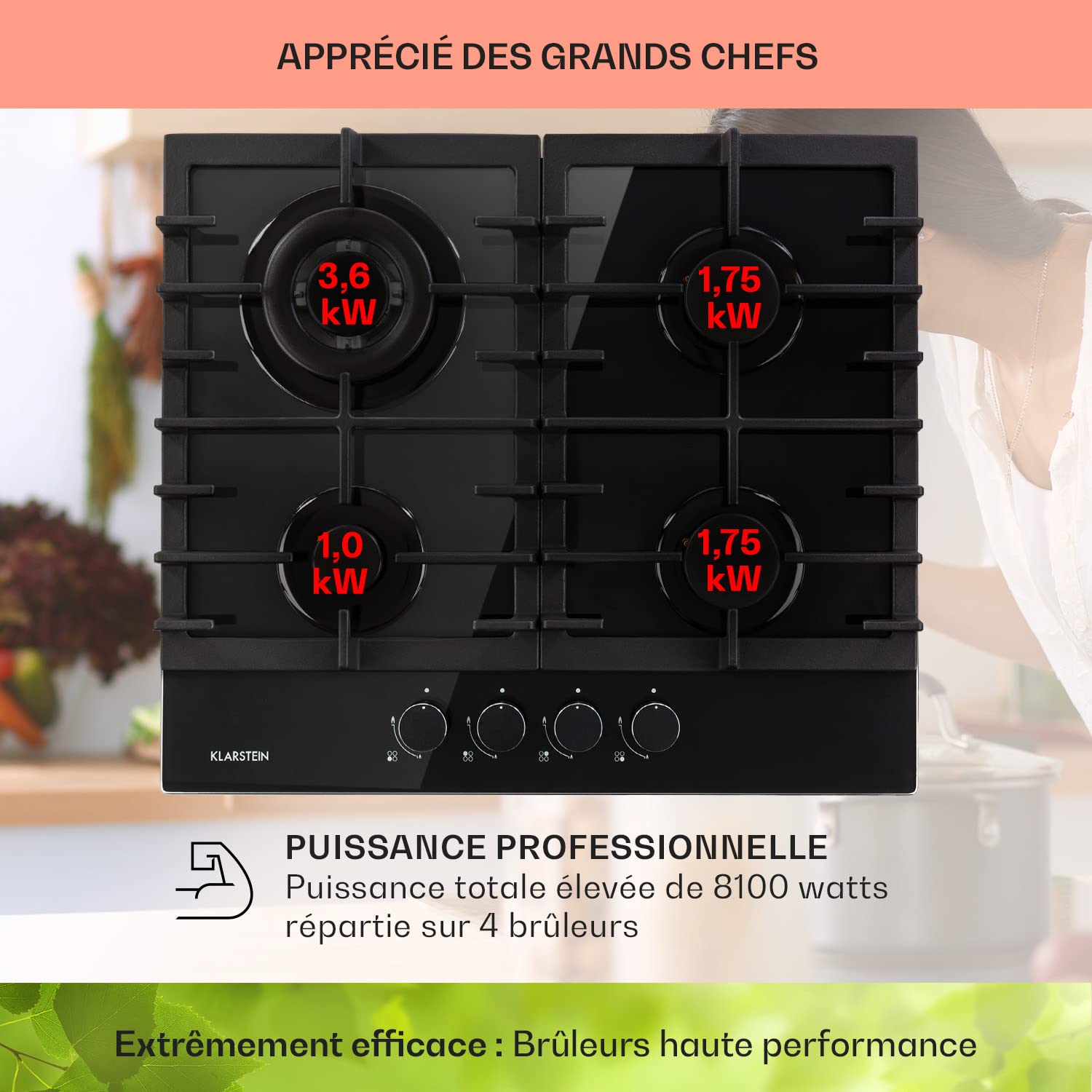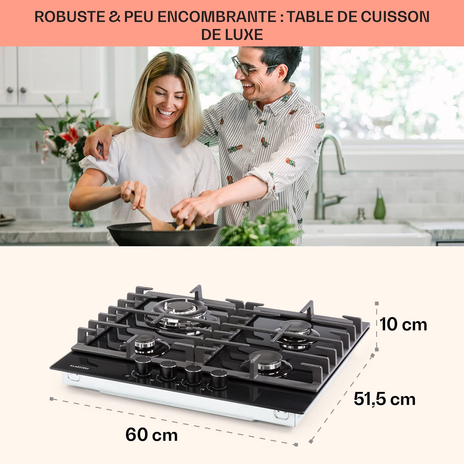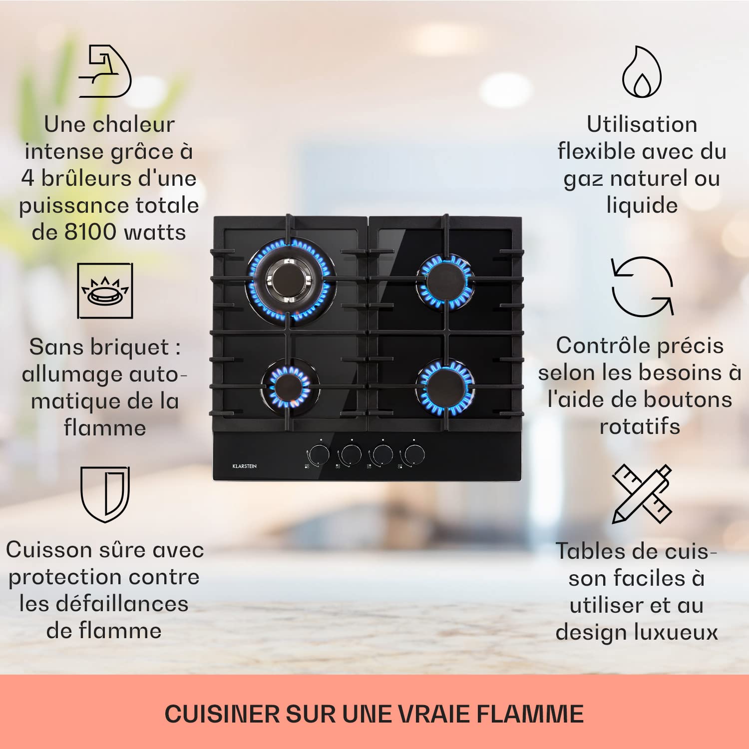 Klarstein Plaque de Cuisson Gaz à 4 Brûleurs en Acier Inoxydable, Table de Cuisson Encastrable à 4 Feux de 8100W, Cuisinières GP