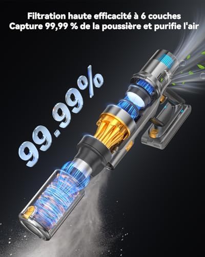 aonus A9S Aspirateur Balai sans Fil 45Kpa/580W/70Mins, Aspirateur sans Fil Puissant, Écrans Tactiles, Aspirateur Balai Autoportant avec Brosse Anti enchevêtrement pour Tapis/Sols Durs/Poils d'animaux : Cuisine et Maison