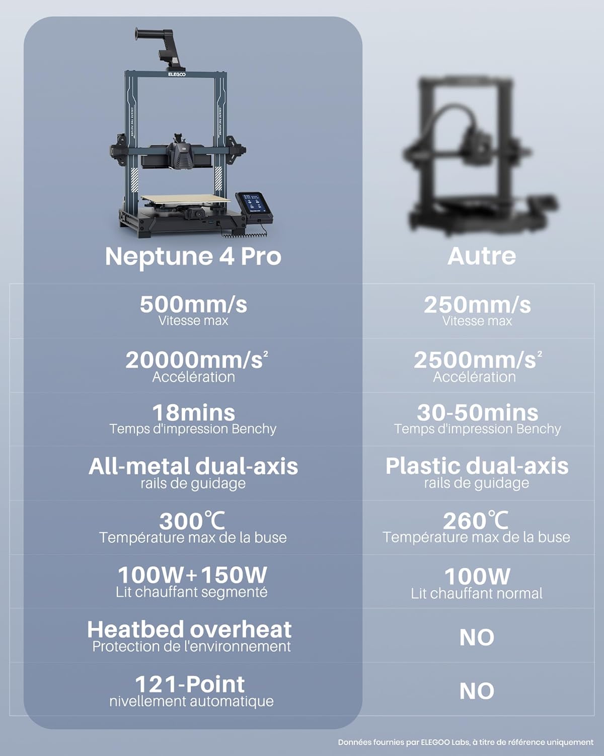 Imprimante 3D rapide ELEGOO Neptune 4 Pro - 225x225x265mm