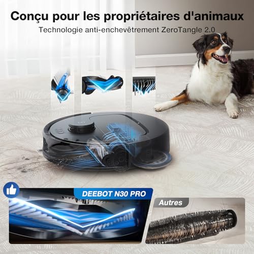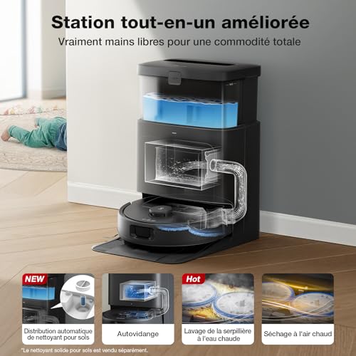 ECOVACS N30 Pro Omni Robot Aspirateur Laveur avec Station, Aspirateur Robot 10000Pa, Nettoyage à l'eau Chaude et séchage, Brosse ZeroTangle 2.0, Levage des Patins de 9mm, Vidage Automatique, Noir : Cuisine et Maison